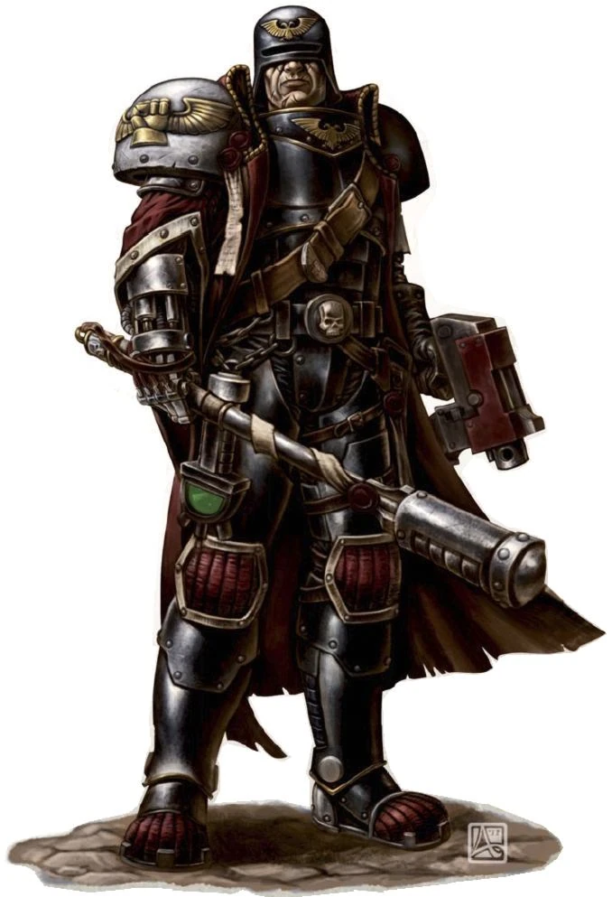 "Mutta jopa tässä kuolemattomassa tilassaan, Keisari jatkaa loputonta vahtiaan. Mahtavat taistelulaivastot ylittävät demonien infestoimat Kurimuksen pyörteet, kulkien ainoaa tietä tähtien lävitse Astronomicanin, Keisarin psyykkisen mahdin, ohjaamina. Laajat armeijat taistelevat tämän nimissä lukemattomilla maailmoilla. Mahtavimpia hänen sotilaistaan ovat Adeptus Astartes, Space Marinet, bio-rakennetut supersotilaat. Heidän vierellään seisovat legioonat: Keisarillinen Kaarti ja lukemattomat planeetansuojelujoukot, aina valpas inkvisitio ja Adeptus Mechanicuksen Teknopapisto, nimetäkseni vain muutaman. Kaikessa monimuotoisuudessaan, he juuri ja juuri pidättelevät alienien, harhaoppisten, mutanttien ja kauheampien olentojen massoja."