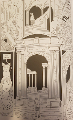 Mika Lietzen teki 2013 sitten erinomaisen 1980- luvun kauhu- ja scifielokuvien estetiikkaa ja tunnelmaa huokuvan sarjakuvan 1986, joka tuli minulle usein mieleen Stranger Thingsia katsellessa. Sarjakuva tuli minulle uudestaan mieleen Lietzenin uusimmaasta sarjakuvasta, Port Arthurista. Lietzenin kuvitus luo tunnelmaa vaivattomasti; nimetön päähenkilö ja hänen kissansa ovat hyvin yksinkertaisesti hahmoteltuja, mutta taustat, maisemat ja maanalainen miljöö on niiden yksityiskohtaisuudessa monimuotoista ja upeaa. Port Arthurissa on hiljainen ja aika leppoisa tunnelma, vaikka idea maanalaisesta kaupungista on itsessään kaikkea muuta kuin leppoisa. Port Arthur on kepeä mutta kaunis, leppoisa mutta aika jännittävä pieni teos, joka varsinkin on turkulaisilla sarjakuvafaneille ehdoton hankinta. Ohan se aina hauska nähdä kotikulmia sarjakuvien sivuilla!